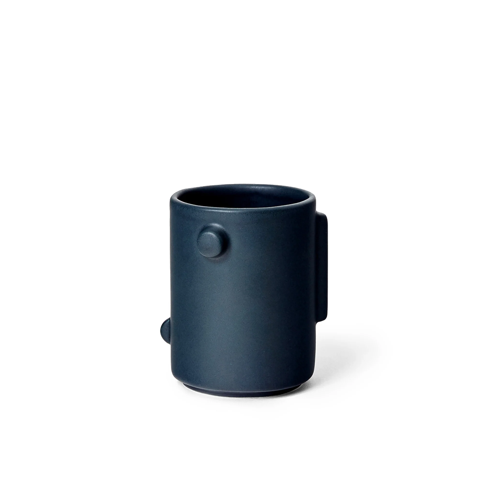 - A stackable mug with three-dimensional sculptural shapes, designed to replace the traditional mug handle and save space in your cupboard